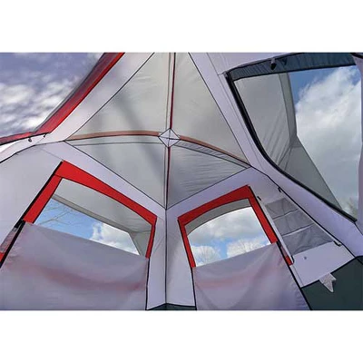 The Camp Creek will provide a luxury home-away-from-home the next time you want to get away. Since it uses fiberglass poles that connect to steel uprights, it provides ample interior space, with almost straight walls, to give you more usable space when you’re inside. This is great whether you are setting up cots, or just want more space inside to hang out and play a round of cards before bed. The rainfly provides large awnings over the front door and back window, which is a great feature when it’s raining. Available in a 4- or 6-person size, this is a great option for all your camping adventures. Features: ·Large door allows easy entry·75D 185T polyester fly with 1500mm coating resists UV damage and stays taut·150D polyester oxford floor with 1500mm coating·Factory-sealed fly and floor seams provide best weather protection·Weatherproof fly buckles to tent for maximum adjustability and protection·Great ventilation with one door and four large windows·Mesh storage shelf, steel stakes and guy ropes includedSpecifications: ·Base size: 10′ x 10’·Center height: 84″·Tent area: 100 ft?·Total weight: 23 lbs. 8 oz.·Packed size: 8.5″ x 28″·Pole diameter: 11 mm FG | 19 mm steel.