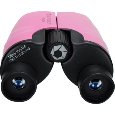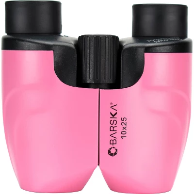The 10×25 Pink Colorado Binocular from Barska is a lightweight compact binocular that is well-suited for hiking, bird watching, and sightseeing. Fully coated optics minimize glare and transmit bright contrast-rich images. BK-7 Porro prisms render clear, high-detail images even in dim light, ensuring that this Colorado series binocular will perform in a wide range of lighting conditions