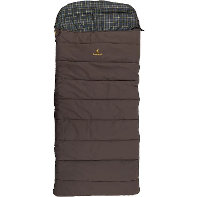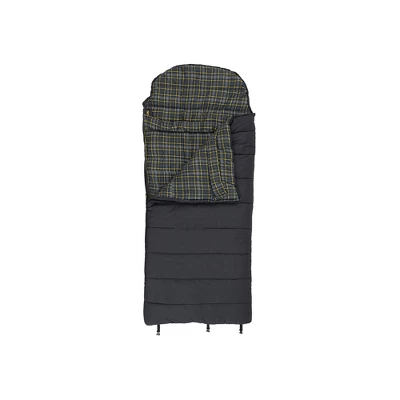 The Klondike is a heavy duty oversized hooded rectangle bag. The Klondike uses TechLoft Silver insulation, which consists of multi-hole staple-length micro-denier fibers that have a siliconized finish for maximum insulation, loft, and compactness. The TechLoft Silver insulation will keep you warm and toasty on those colder nights when you’d prefer to have more “wiggle room” than you get with your mummy bag. It uses two-layer offset construction to eliminate cold spots. For transporting, we include webbing straps with quick release buckles that keep your “rolled-up bag” secure. Features: ·Heavy duty cotton canvas outer fabric·100% Cotton flannel liner·Roll-up strapsSpecifications: ·Dimensions: 38″ x 92″·Fill weight: 160 oz.·Bag weight: 15 lbs. 0 oz..