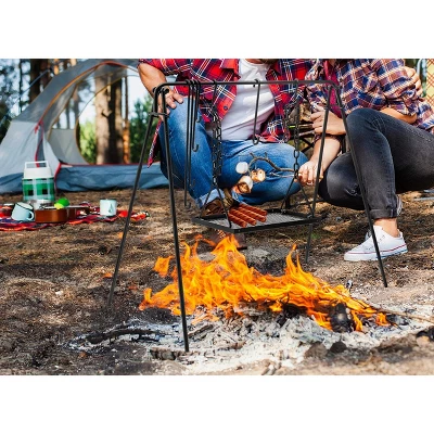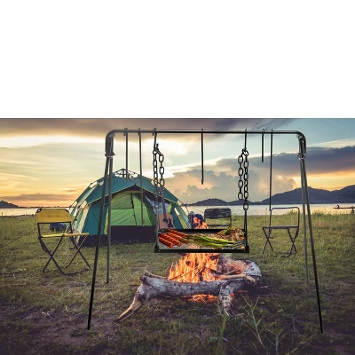 Bruntmor Cast Iron Outdoor Portable Swing Hanging Campfire Cooking Stand