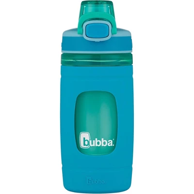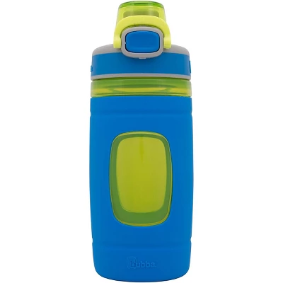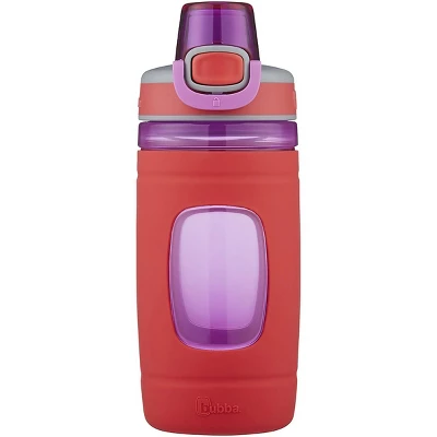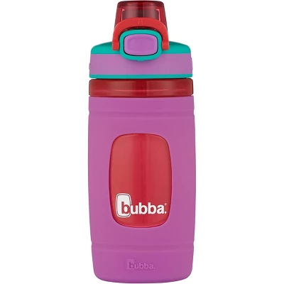 Teach your kids to go with the flow with the Bubba 16 oz. Kid’s Flo Refresh Water Bottle. This sturdy plastic water bottle features a bright, easy-to-grip sleeve that is perfect for keeping drinks cold and not slipping out of little hands. With Flo’s chug lid, kids can easily hydrate quickly without missing their turn on the monkey bars. A handy button lock on the lid for any opening. BPA-free Eastman Tritan construction means this bottle stands up to drops and is impact, stain, and. The sleeve comes off, so throw the lid and body onto the top rack of your dishwasher for no-fuss cleaning. Suitable for ages 3 and up.