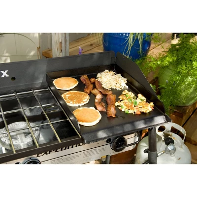 The Professional Flat Top Griddle 16″ x 14″ is the newest steel griddle to join our line of flat top griddles. Designed to fit 16″ Cooking System stoves, this flat top steel griddle is the perfect option for when you’re using your Professional Barbecue grill box (BB90L) but also want to use a professional steel griddle at the same time. Up until now you’d have to remove your grill box to use a SG90 or SG100 Professional Griddle. Now you can keep your grill box over the left two burners and place the SG14 over the right most burner. They’re a match made in heaven. Grill and fry all at the same time.