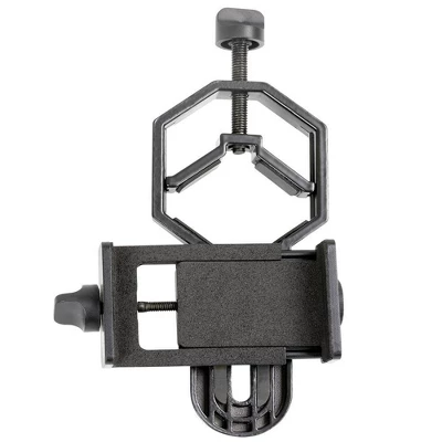 Capture images and video right on your smartphone with this handy smartphone adapter. with its light, rigid frame, this accessory allows you to connect any smartphone to the PowerSeeker eyepiece, or any eyepiece with an outside diameter of 45 mm or smaller. The additional magnification provided by the eyepiece allows your phone to capture stunning images of wildlife, distant objects, and even the Moon at night! This smartphone adapter installs in seconds by simply clamping over the top of the eyepiece. Tightening knobs securely lock your phone in place. Note that some large and/or excessively bulky phone cases (including folio style cases) may need to be removed for the phone to fit in the adapter.