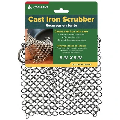 Remove tough, burnt-on food from your cast iron cookware with ease thanks to Coghlan’s Cast Iron Scrubber! It takes the hard work out of cleaning cast iron, all while protecting the seasoning. This stainless steel chainmail scrubber is the perfect size to pack with your camping gear. It is durable, dishwasher safe, and built to last.