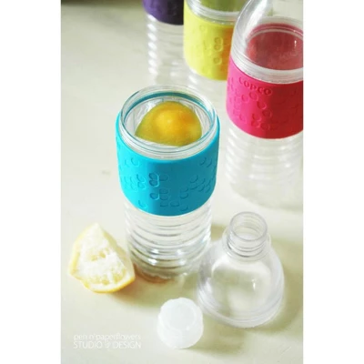 - Features an easy to twist body allowing you to add ice cubes or fruits and a textured, non slip sleeve for an easy soft grip and a fun pop of color