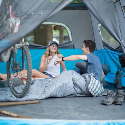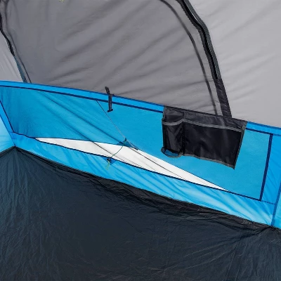 - WHAT’S IN THE BAG: Includes tent with pre-attached poles, rainfly with attached guylines, room divider, battery compartment (4D batteries not included), tent stakes, and carry bag.