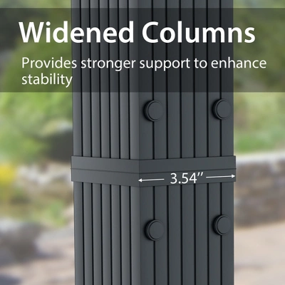 - Sturdy Aluminum Frame: Crafted from powder coated aluminum frame, which is firmly connected by multiple fixing screws, the retractable pergola is extremely strong and rust resistant. And the 4 wide 7” x 7” metal feet with pre-drilled holes can help the pergola stand stably on different ground surfaces. (Please reserve 9.8” x 9.8” space for installing each metal feet.)