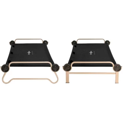 - Includes 2 cots, 2 canvas carry bags, 4 stack adapters, 2 side organizers, and 2 locking straps