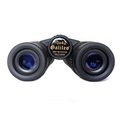 The Galileo G-1042C features 42mm objective lenses and brings images 10 times closer to you than the naked eye. The G-1042c binocular has multi-coated optics for improved glare reduction and increased contrast & clarity. The G-1042C is a roof prism design making them more compact than other binocular designs. Additionally the G-1042C is Nitrogen Purged, waterproof and fogproof and features black water resistant comfort grip rubber armoring, twist up eye guards for variable eye relief and full range center focus. Included with the Galileo G-1042C is a carrying case, neck strap, lens cloth, protective eye caps and attached objective caps that won’t get lost. Other specs include a 4.1mm Exit Pupil and a minimum focusing distance of 15′. Linear Field of View is 288 at 1000yds. Interpupillary Distance (IPD) ranges from 57mm to 75mm and Eye Relief is approximately 14mm.