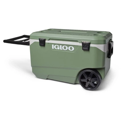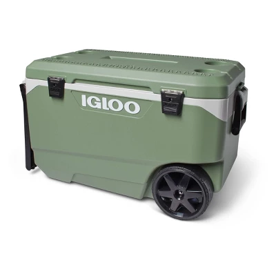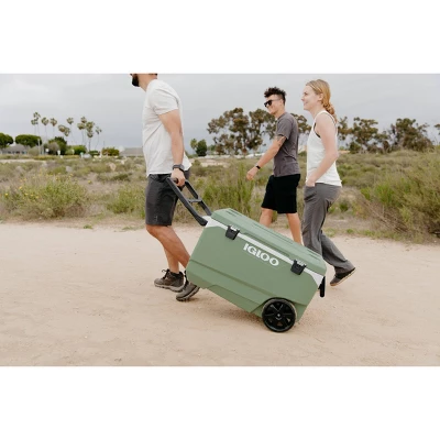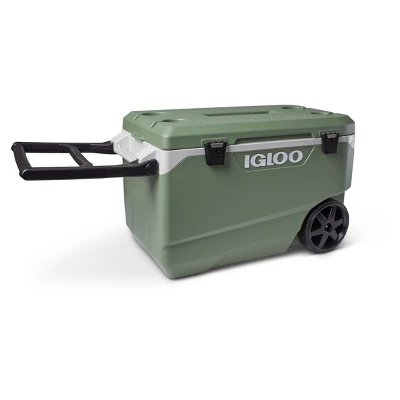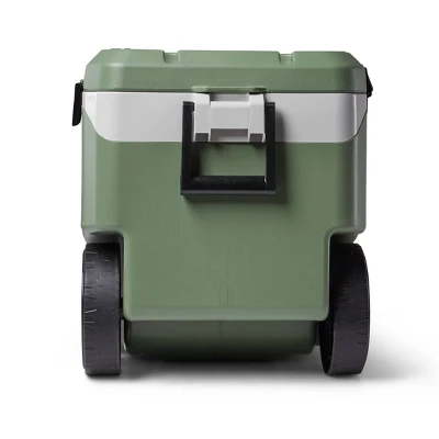 A cooler that makes Earth (and you) very happy. The large ECOCOOL Latitude 90 Roller Cooler is the first of its kind to be made with recycled post-consumer resin! MORE ON ECOCOOL™: We’re transforming post-consumer plastic — primarily discarded plastic yogurt cups and milk jugs — that would otherwise end up in landfills into a recycled resin used to build this cooler. THERMECOOL™ INSULATION: This innovative foam lowers CO2 and VOC emissions making it 50 times better for the planet. The oversized wheels provide all-terrain mobility, while the flip-up tow handle reduces towing force by up to 50% for easy pulling.