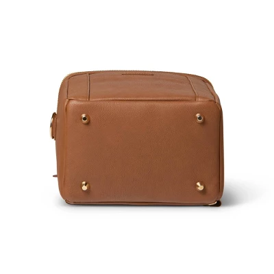 - Features multiple carry options: removable, adjustable, convertible shoulder strap & a top grab handle with a vegan leather wrap