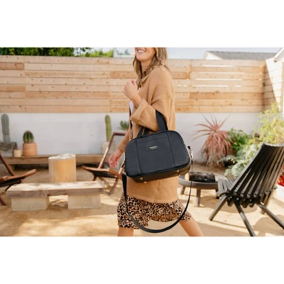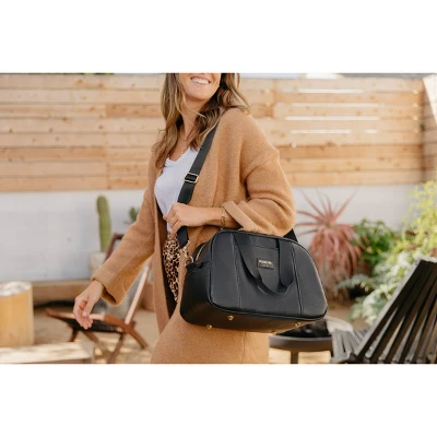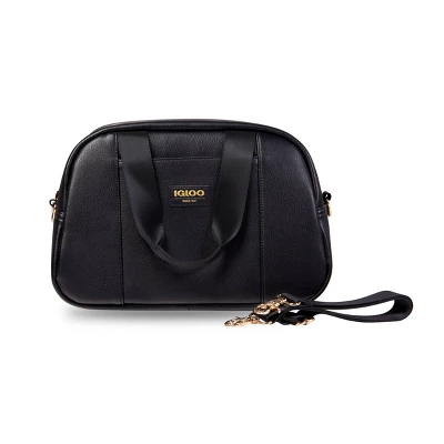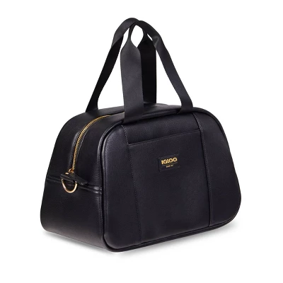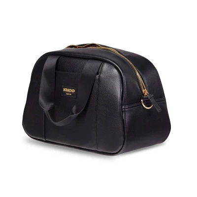 “Pretty cool” is now taking on a whole new meaning. Our fashion-forward, faux-leather Igloo Luxe Satchel Cooler Bag is more functional than your handbag, but equally as stylish and easy to carry (hands-free!). Designed with a stylish, soft vegan PU leather exterior & gold metallic insulated liner. Features gold-colored metal trims & hardware (zipper, strap clip, attachment ring & strap sliders), as well as gold-colored metal feet on the bottom to keep the bag elevated off surfaces.