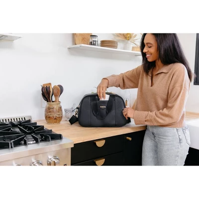 - Features multiple carry options: removable, adjustable crossbody shoulder strap & dual top grab handles