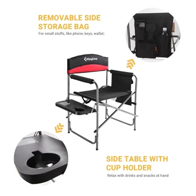 Whether you’re going on an outdoor camping adventure or sitting at your favorite sporting event, the 2 Padded Folding Chairs from KingCamp will be an ideal place to relax your feet. Designed for maximum comfort, these director chairs feature double-layer fabrics with padding covering the armrests and backrest to keep you well-suited throughout your camping journey, while the solid armrests also help you get in and out of the chair with ease. Constructed with a sturdy alloy steel frame and a horizontal bar structure combined with 4 foot covers, these chairs offer increased durability and secure stability while still being light in weight. These specific chairs are made to support up to 400 pounds. Including a side table with an integrated cupholder and a removable side storage pocket, you’ll conveniently have everything you need within reach for a perfect outdoor day. When not in use, fold the chair and simply transport them with the built-in carry strap. Enjoy your camping trips, outdoor parties, or fishing with the 2 KingCamp Padded Folding Chairs.