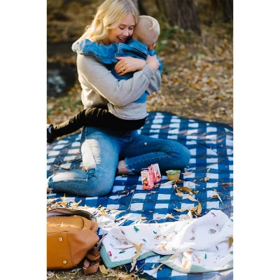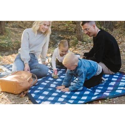 The 5×7 bring-it-everywhere outdoor blanket enlarged to fit the whole family! The all-purpose blanket is designed to handle spills and messes from the park to the beach, the water-resistant surface wipes clean for quick and easy cleanup. The Indoor/Outdoor blanket features a compact and foldable structure with a pocket and convenient carrying strap so you can bring it everywhere. The 5×7 picnic blanket is constructed from 100% polyester and is ideal for outdoor activities.