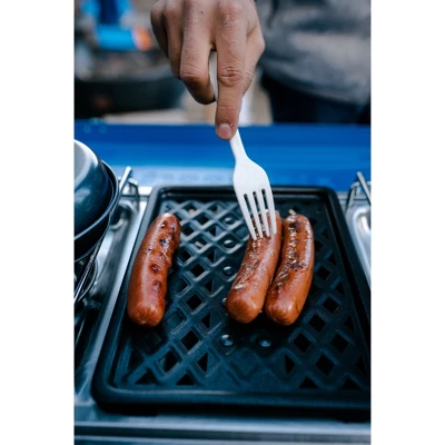 Our outfitter series of stoves include features to increase performance and durability for those who feed groups outdoors. This three-burner model starts with two oversized, stainless steel burner heads with 25,000 B.T.U of cooking power each. Nestled between them is a 5,500 B.T.U. griddle burner – perfect for cooking home fries or hot dogs! With the included piezo electronic ignition, you don’t need matches to start cooking. Also comes with a regulator for easy control of your fuel. A steel frame and stainless steel drip pan ensure this stove is durable and easy to clean.