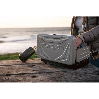 With our two-burner propane stove, you’ll never have to choose between frying bacon and making coffee again! Two 10,000 B.T.U. stainless steel burners, fueled by 16.4 oz disposable propane cylinders (not included) provide plenty of cooking power. We’ve attended to all the details – like a detachable lid, windscreens, and a heavy-duty removable steel grate. The entire stove is coated with a baked-on enamel finish, for a lifetime of outdoor cooking pleasure!