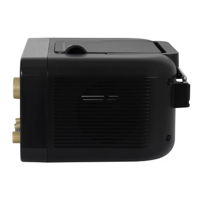Classic retro design, the Studebaker SB2135BT has great features abound on this portable CD player with AM/FM radio and Cassette Player (Recorder), while also featuring Bluetooth to seamlessly stream music, podcasts and other audio from your Bluetooth devices. The top loading CD player is CD-R/RW compatible. The Cassette Player/Recorder has auto stop. Other great features include aux-in jack, condenser microphone and AC/DC operation. The built-in carrying handle makes this portable unit really portable.