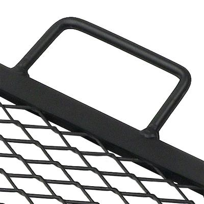 This heavy-duty square mesh steel fire pit cooking grill grate can be used for meals, BBQs, and so much more; it is perfect for cooking right over the fire pit at any family gathering, friendly get-together, parties, events, or simple, enjoyable dinners over the fire for that perfect, smokey bite. Cook all the campfire food your heart desires with this square fire pit cooking grill. The grill is square-shaped making it perfect for square fire pits, and it is made from durable Q235 steel material with a steel mesh surface to allow food to cook evenly. Plus, the handles on the sides and the raised edges makes it easy to maneuver and keeps food sliding off into the flames. The durable, steel construction of the grate allows for longevity with the added finish of heat-resistant paint. This square grill grate holds up to 25 lbs of food at a time.