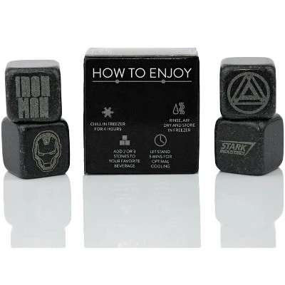 Enjoy a nice cold drink without watering it down with these Marvel Cold Stones! These Black Granite stones have smooth edges so they won’t scratch your glass. Each stone features a unique Marvel Iron Man design.