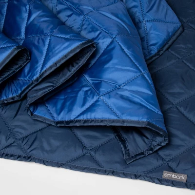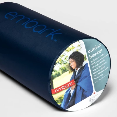 Stay warm and cozy while camping, stargazing or tailgating before the big game with this Tailgate Blanket from Embark™. Made from 100% recycled polyester with soft filling, this blanket features a water-repellent construction for lasting outdoor use. Dark blue on one side and lighter blue on the other, the blanket can be machine washed and dried for easy cleaning.