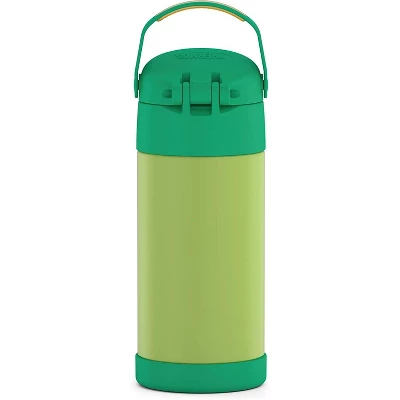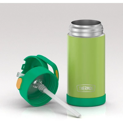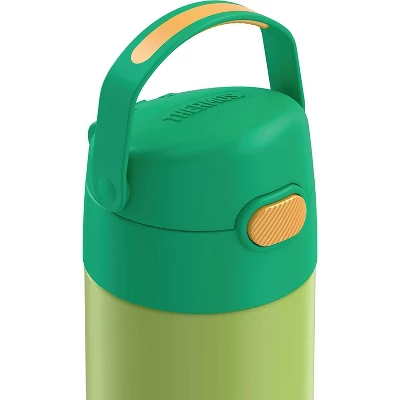The FUNtainer® 12oz Vacuum Insulated Stainless Steel Water Bottle with Straw keeps drinks cold for up to 12 hours. Our kids water bottles are built so their drinks are as cool on the inside as they look on the outside. Kids stay hydrated and parents stay happy. The double wall stainless steel construction is built to handle drops, dings and assorted roughhousing. Includes an integrated carry handle with soft-touch grip, making it easy for kids to carry with them throughout the day. Help keep germs away with the hygienically covered silicone straw which is removable for easy cleaning. To clean, you can pop your FUNtainer water bottle in the dishwasher; however hand washing is recommended. Not for use with hot liquids.
